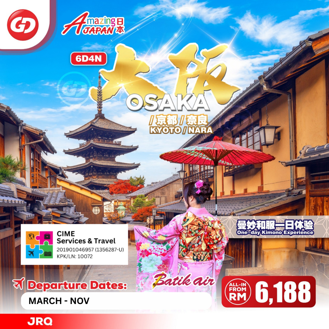 Experience the perfect blend of tradition and modern vibes on our 6D4N journey through Osaka, Kyoto, and Nara. From wandering the Arashiyama Bamboo Forest to a stunning Kimono experience in Kyoto, this is the getaway you’ve been dreaming of! âŠī¸â¨